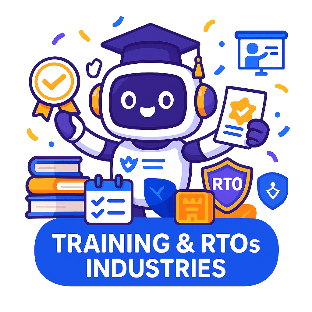 Compliance & RTO Admin – Shares policy links, checks document requirements, accepts uploads to secure storage.